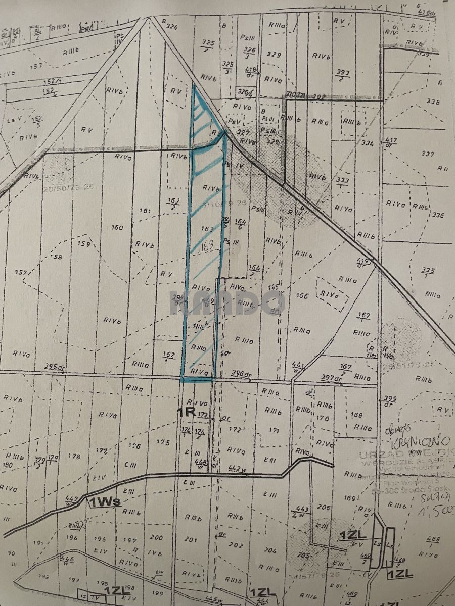 Do sprzedania działka rolna o powierzchni całkowitej 4,15 ha z dojazdem do drogi publicznej. Zawiera następujące użytki: RIIIa,b, RIVa,b oraz RV.
