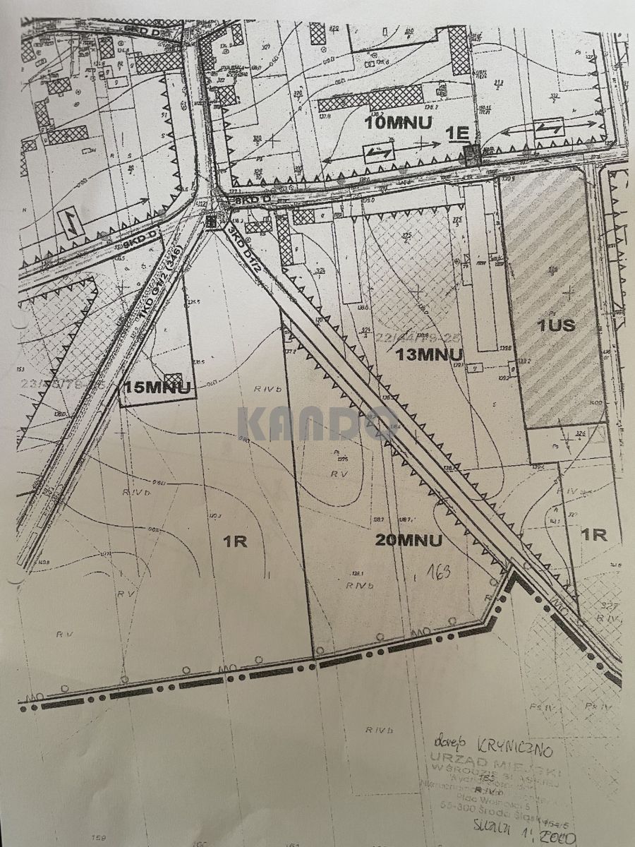 Część działki oznaczona jest symbolem R ( 3,35 ha), część symbolem 20 MN ( 8000 m2) co w MPZP oznacza: tereny zabudowy mieszanej - mieszkalnej oraz usługowo - gospodarczej.