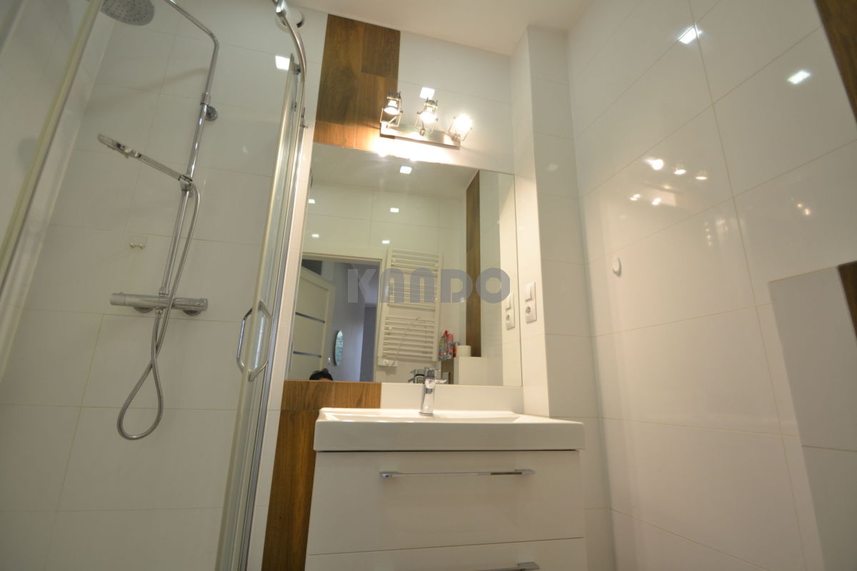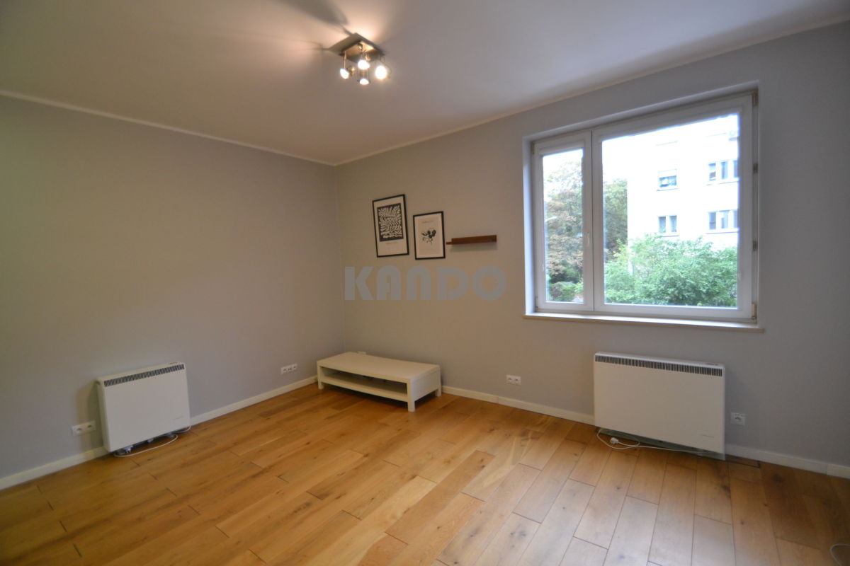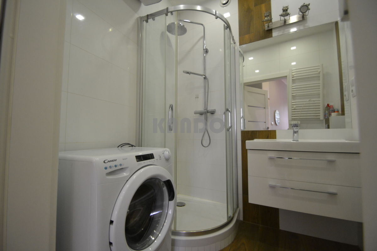 Nieruchomość po generalnym remoncie. Składa się z powierzchni typu "living room" połączonej z kuchnią, przedpokoju z wbudowaną szafą, łazienki z kabiną prysznicową oraz odrębnej sypialni.