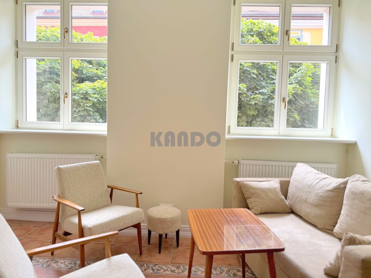Wszystkie pomieszczenia cechują się wysokością 3,20 m, co dodatkowo potęguje wrażenie przestronności. Lokal został wykończony z najwyższą starannością, z dbałością o każdy detal. Umeblowany nietuzinkowymi, stylowymi meblami, w tym antykami,które nadają wnętrzu unikalnego charakteru. Z antywłamaniowych dźwiękoszczelnych okien roztacza się wspaniały widok na zabytkową okolicę.