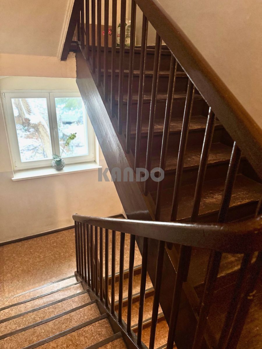 Mieszkanie trójstronne, jasne, do własnej aranżacji i modernizacji (wymaga nakładów), z możliwością zrobienia 3 pokoi, kuchnia o powierzchni 16,42m2. Na podłogach deski do cyklinowania. Do mieszkania przynależy piwnica o powierzchni 10 m2 i stumetrowy ogródek.